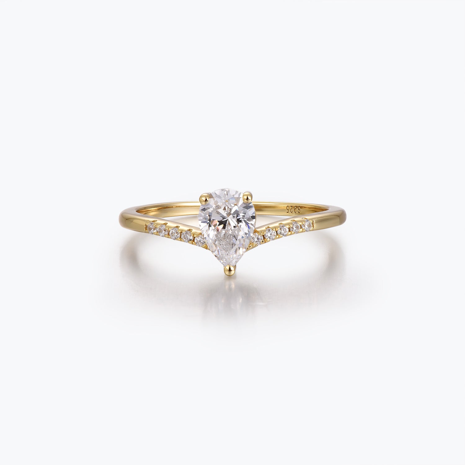 Bague de fiançailles avec bande pavée courbe en moissanite et poire en or Dissoo®