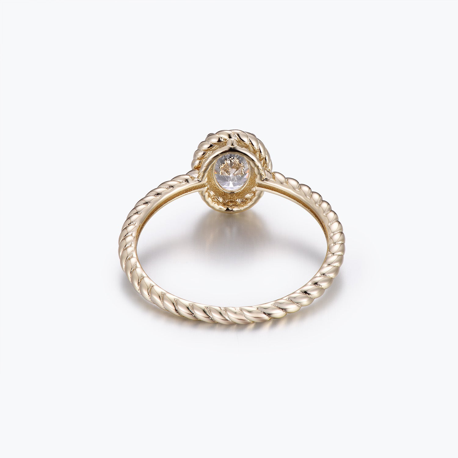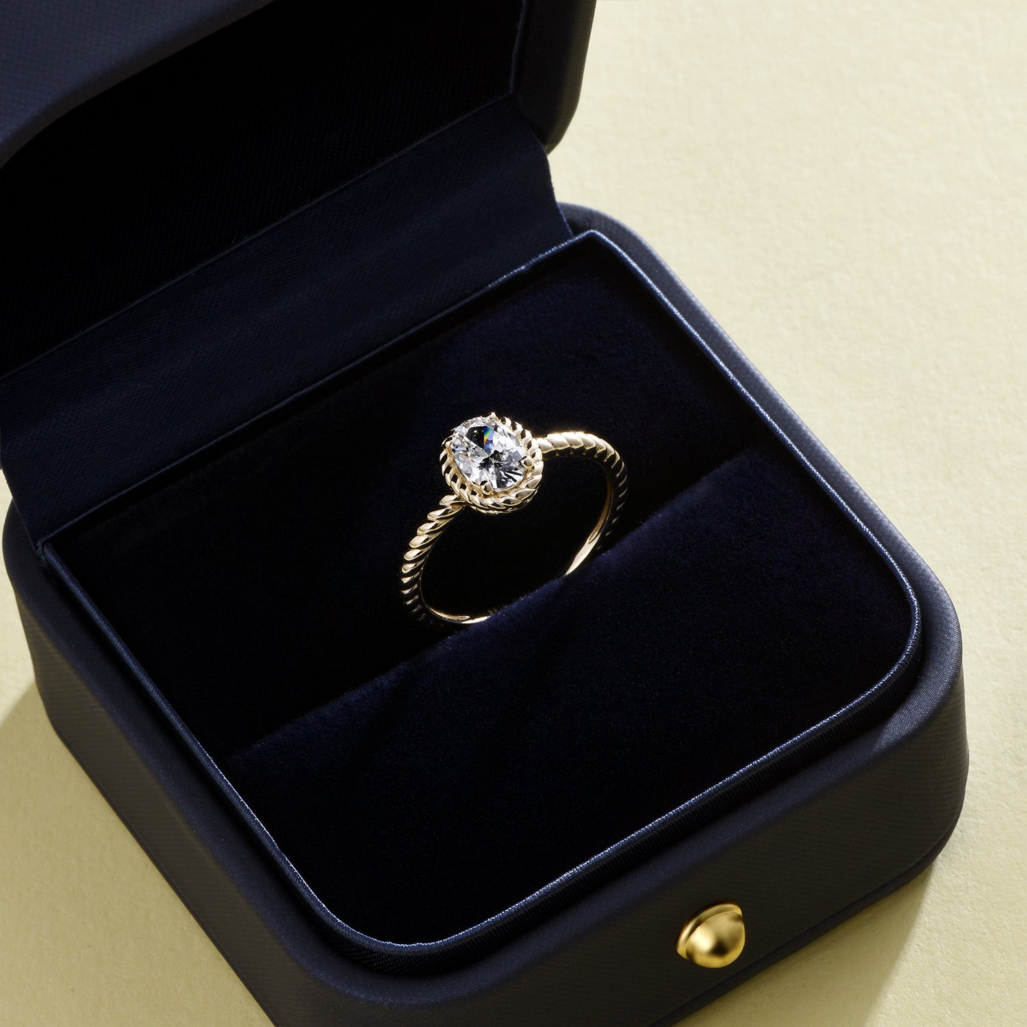 Bague de fiançailles solitaire Dissoo® en or jaune, taille ovale, sertie clos torsadé