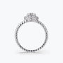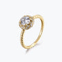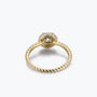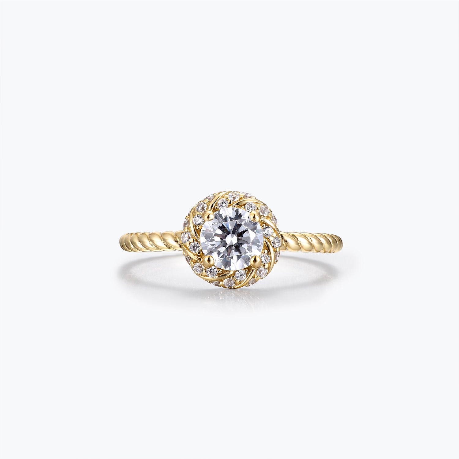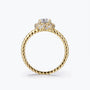 Bague de fiançailles Dissoo® en or jaune, sertie d'un halo torsadé et d'une moissanite.