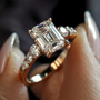 The Nova Elise features a brilliant emerald-cut moissanite at its center, chosen for its clarity, grace, and quiet brilliance — a perfect reflection of her. Flanked by a row of hand-set side stones, this ring captures the light just like the love and strength she’s always given you.