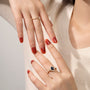 The set also comes with a perfectly matched curved Versailles moissanite wedding band ring, encrusted with 12 round mini moissanite stones for even more brilliance and shine. The curved design adds a unique and modern twist to the classic wedding band, making it a perfect complement to the engagement ring.