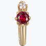 Brilliant round-cut red gemstones are set along a timeless hoop silhouette, their rich crimson tones glowing with warmth and refined intensity. Each stone is carefully placed to catch the light from every angle, creating a look that feels both classic and quietly bold.