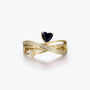 A luminous heart-cut blue goldstone shines at the center of this captivating crossover ring, its deep midnight hue scattered with starlike sparkle. Multiple sleek rows intertwine effortlessly around the finger, creating a bold yet fluid silhouette that symbolizes two lives meeting as one.