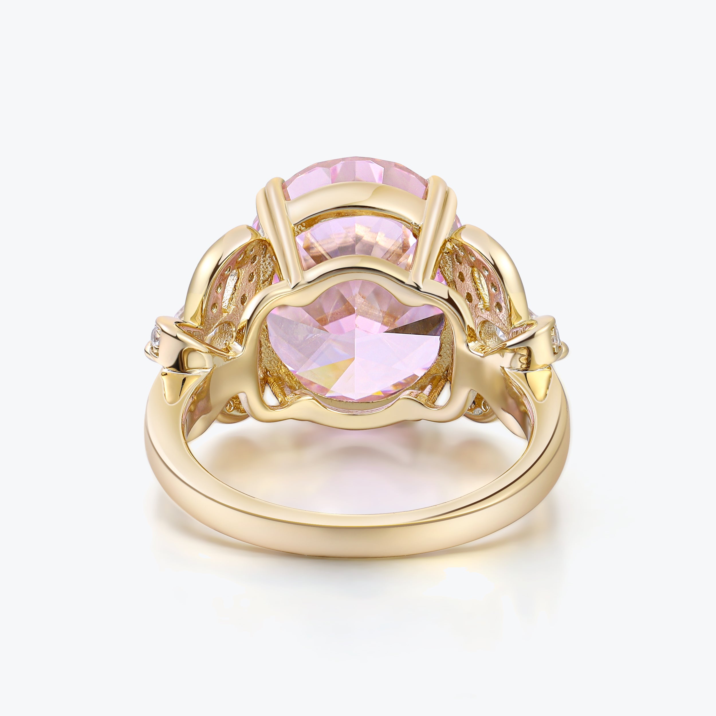 Introducing our stunning Dissoo® Pink Bowknot Three-Stone Engagement Ring & Cocktail Ring in Gold Vermeil, the ultimate symbol of love and elegance. This exquisite ring features a breathtaking 10.0-carat oval-cut Fancy Pink high-quality zircon in a secure 4-prong setting, which is sure to captivate anyone's attention.