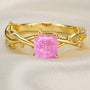 Princess Cut Lab Grown Pink Sapphire Ice-crackle Texture Leafy Ring