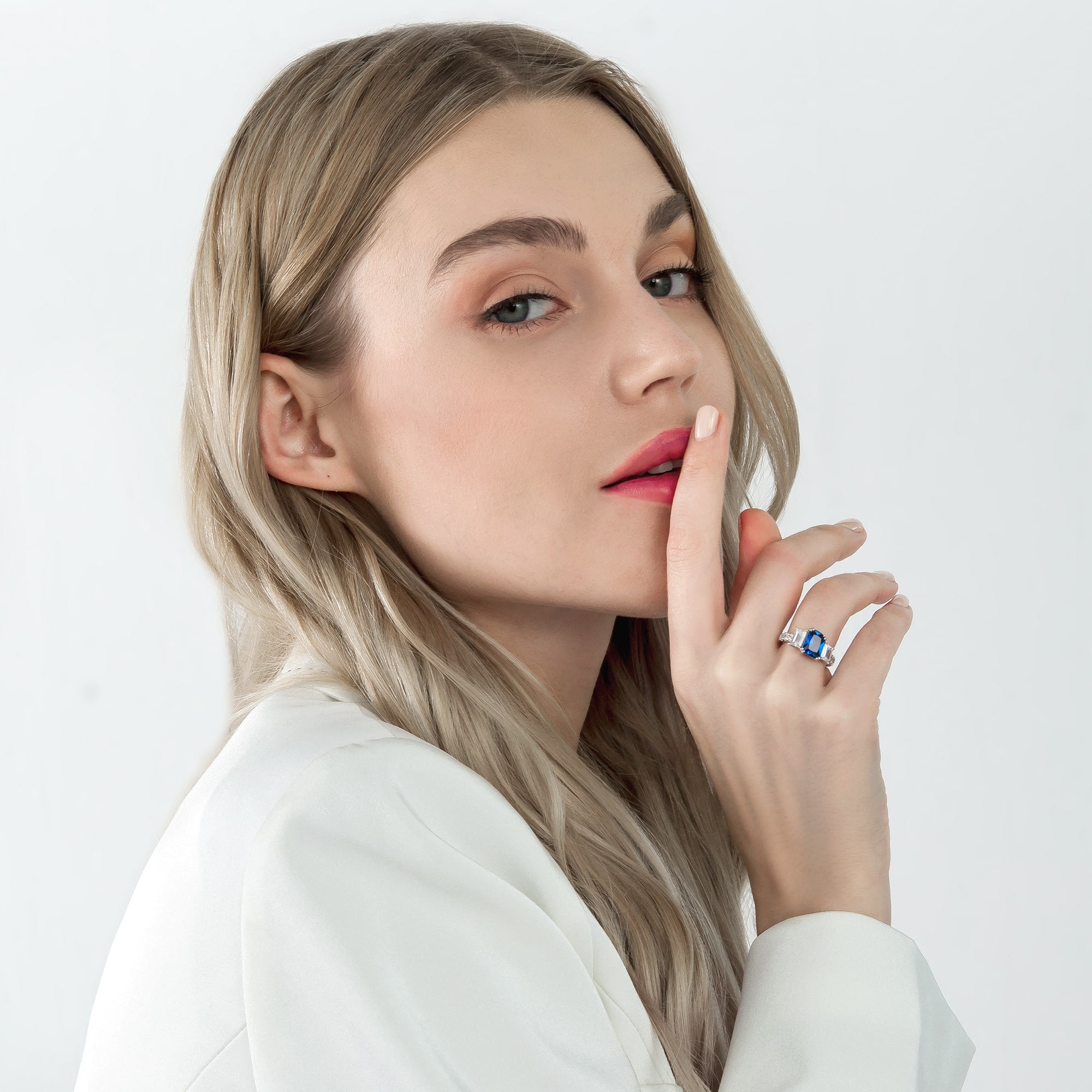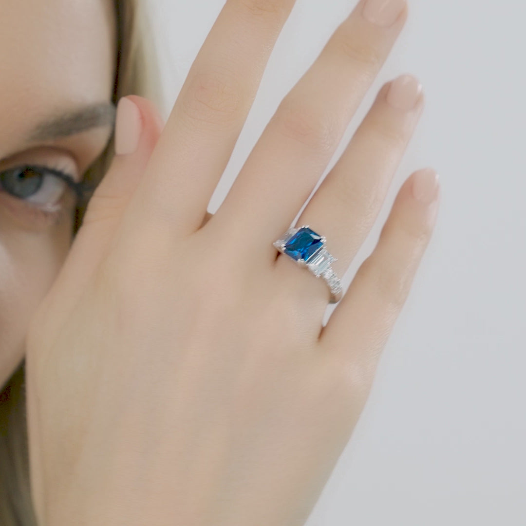 Elegant Emerald Cut Blue Gemstone Engagement Ring