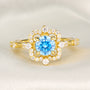 Floating Round Cut Blue Gemstone Engagement Halo Ring