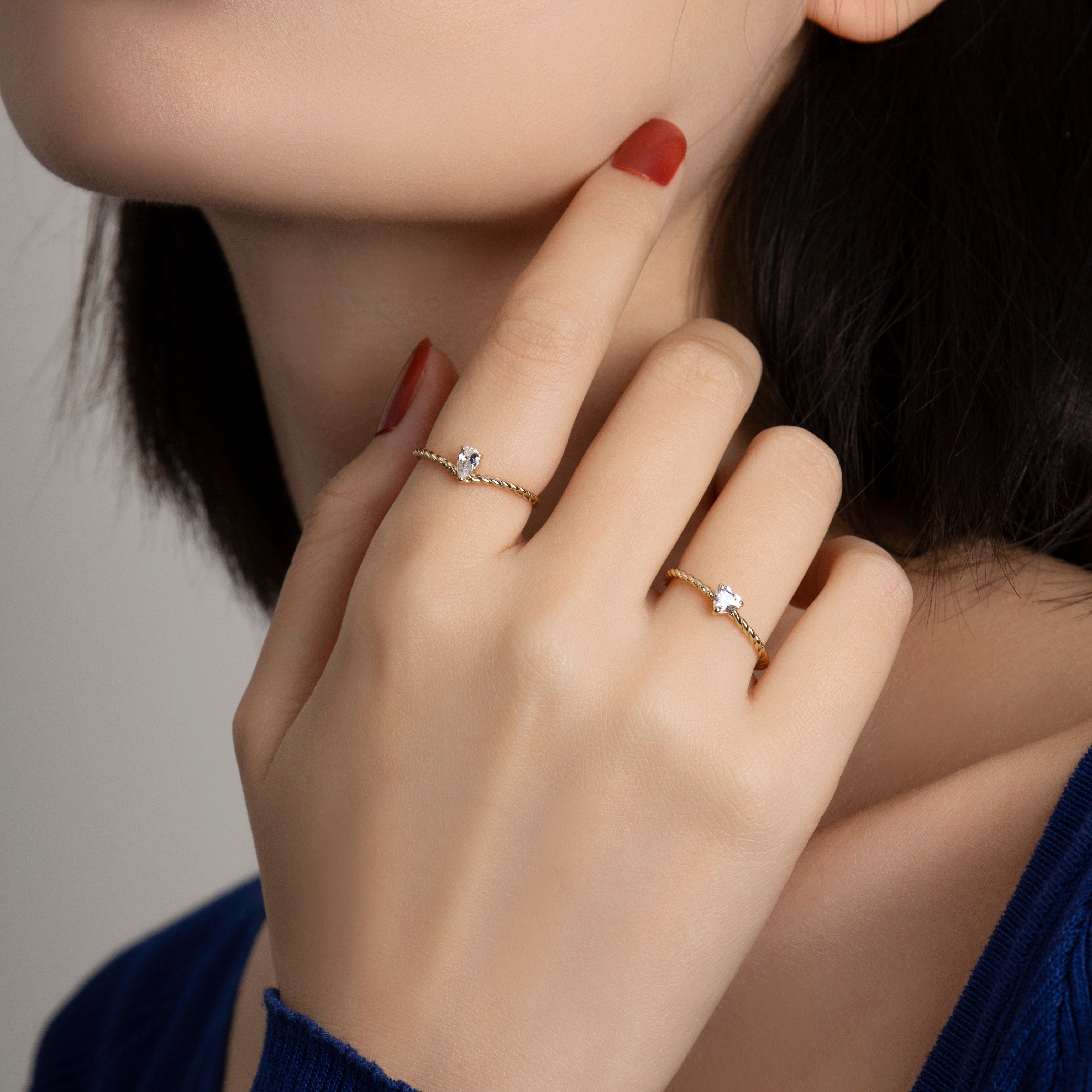 Heart & Pear Cut Twisted Rope Moissanite Engagement Wedding Ring