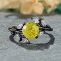 Sylvana Round Cut Lab-Grown Yellow Garnets Ice-crackle Texture Black Gold Ring