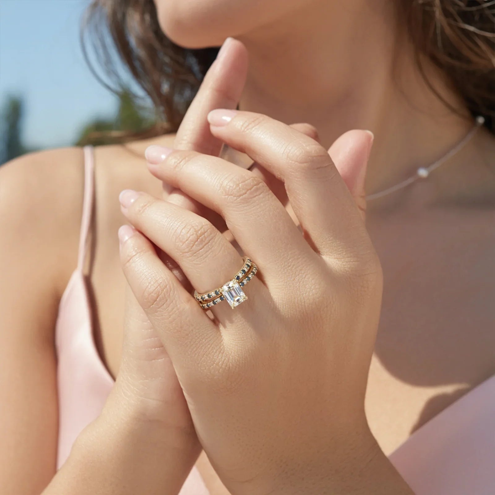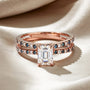 Sophisticated and enduring, the Cerulean Divide Eternity Emerald Cut Moissanite Ring embodies elegance without end. At its center shines a brilliant emerald cut moissanite, celebrated for its unmatched fire and clarity. The sleek, elongated cut enhances the gem’s radiant sparkle, making it a striking centerpiece. 🤍✨