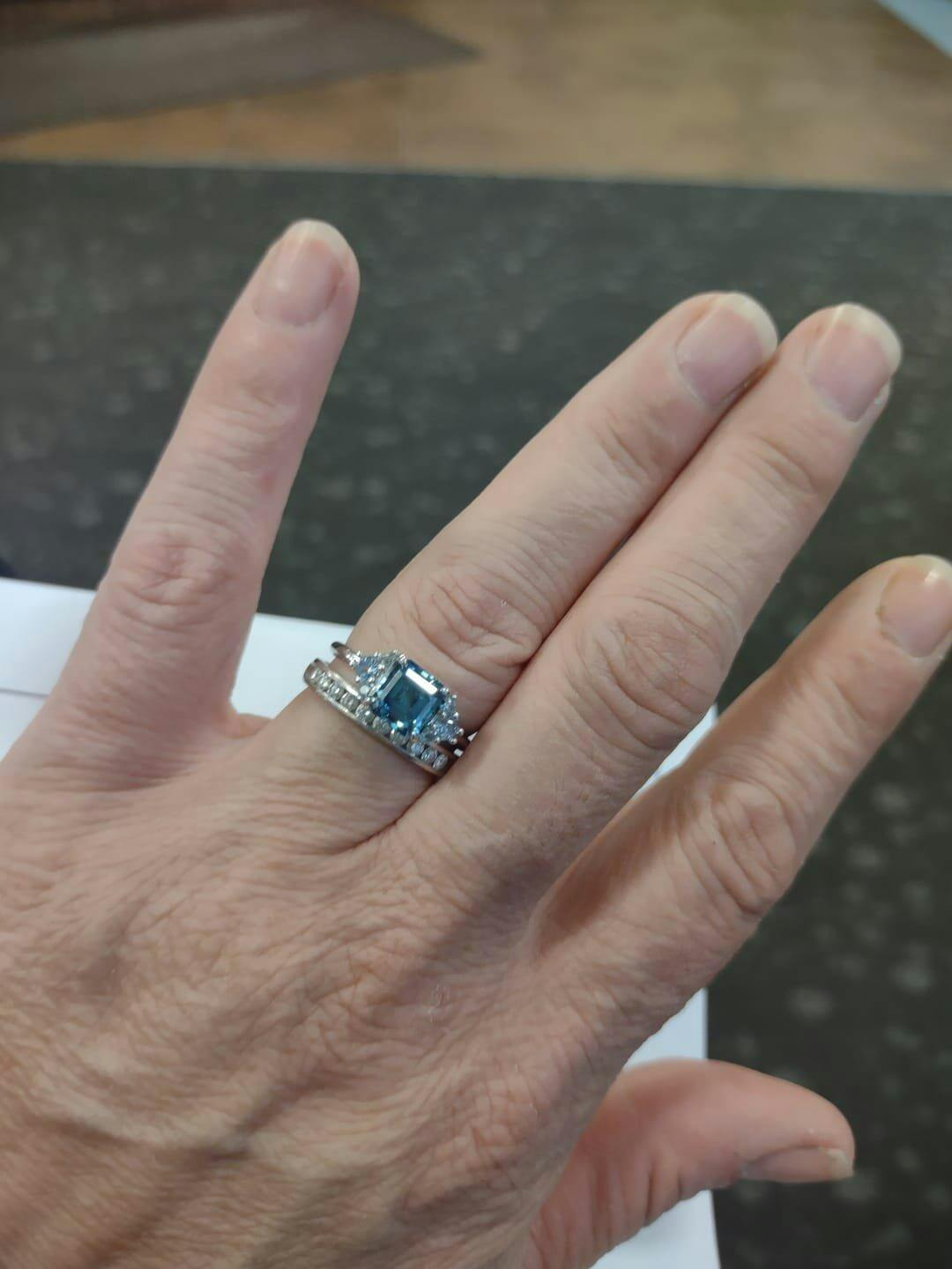 At its heart lies a stunning Asscher cut blue gemstone, a cut renowned for its sharp facets and endless depth — reflecting light like a hall of mirrors. 🌌💎