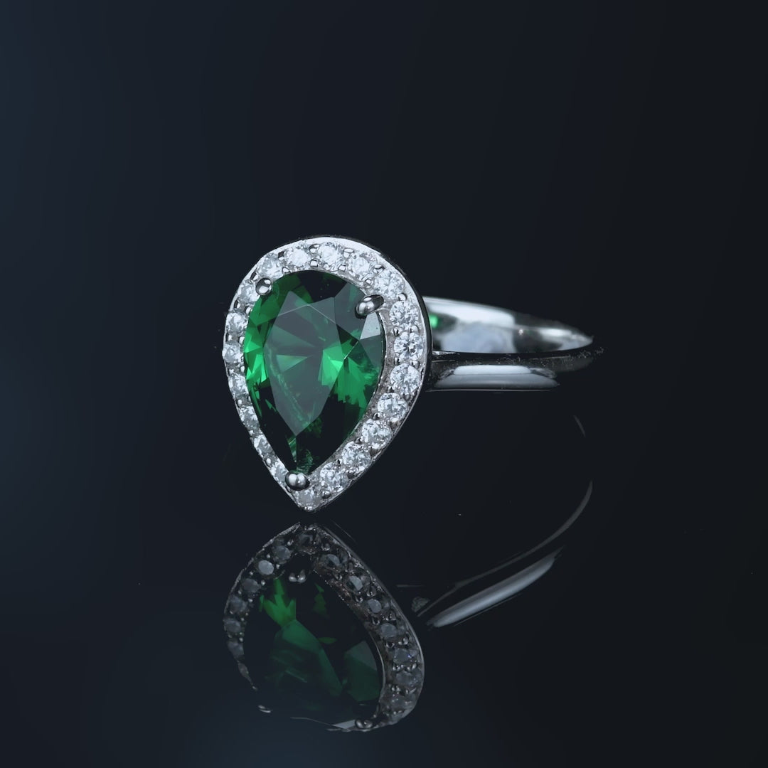 Timeless Pear Cut Green Gemstone Engagement Halo Ring